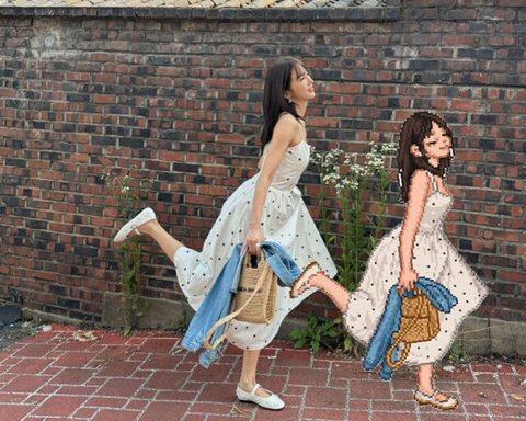 이는 AI를 통해 자신과 유사한 캐릭터를 생성한 것으로 과거 지브리풍 사진과 마찬가지로 MZ들 사이 픽셀화가 선풍적인 인기를 끌고 있다. 사진 속 윤은혜는 도트무늬 원피스를 입고 발랄한 포즈를 취하는가 하면 기타를 머리 위에 들고 누워 있다.