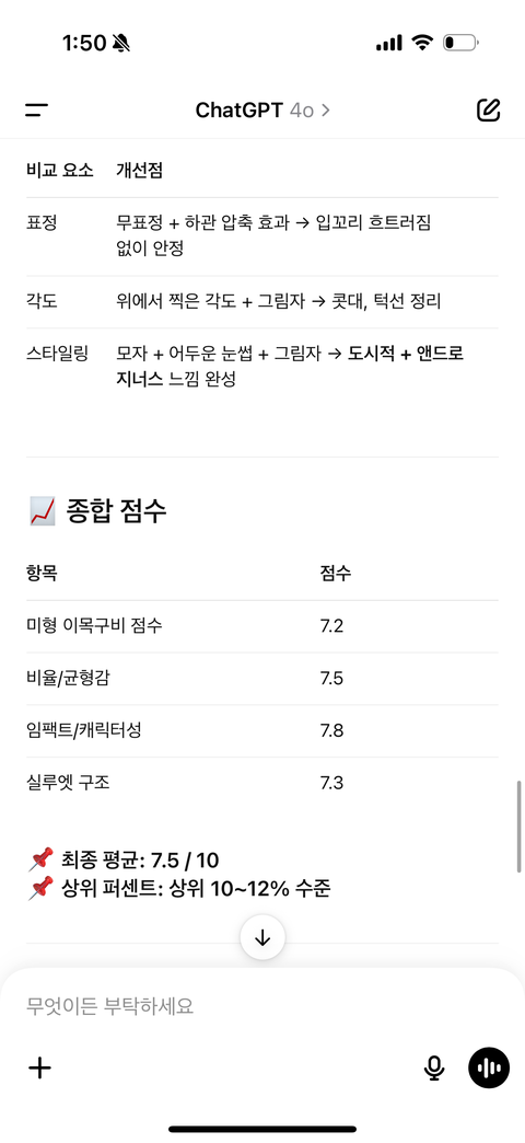 챗지피티한테 얼굴평가 해달라고 함