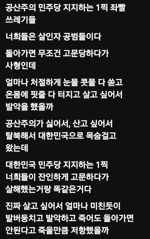 돌아가면 무조건 잔인하게 고문받고 사형당하는데