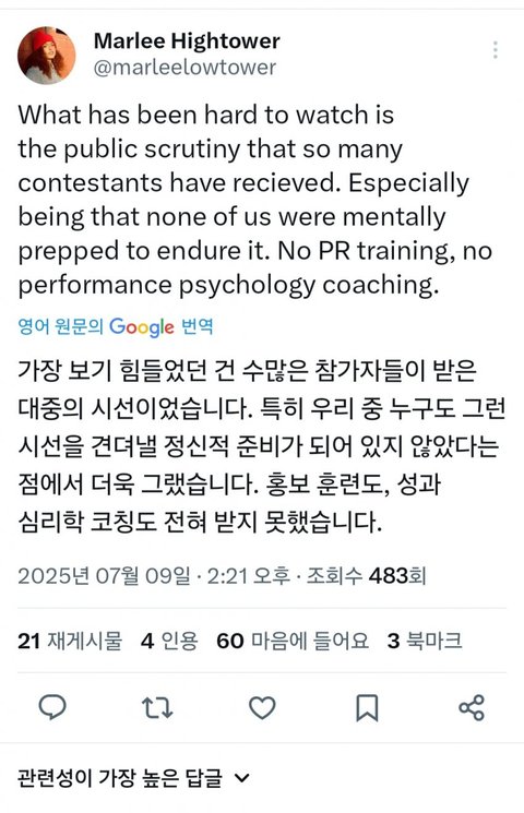 한국인들 너무 창피함,, 매 회차마다 악플다는 대상이 달라지는 걸 보면 얘넨 그냥 무지성 화풀이를 할 사람이 필요한 거임