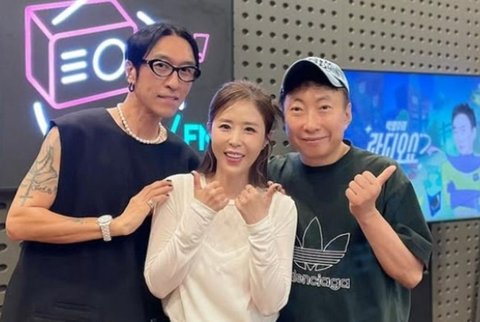 사진에는 이날 개그맨 박명수가 DJ로 활약 중인 라디오에 출연한 코요태 신지, 빽가의 모습이 담겼다.