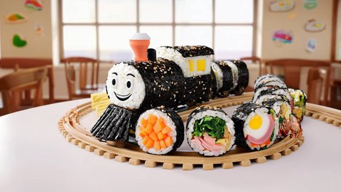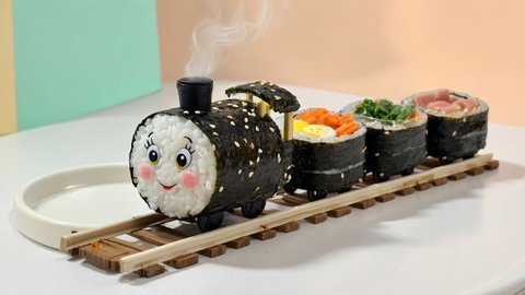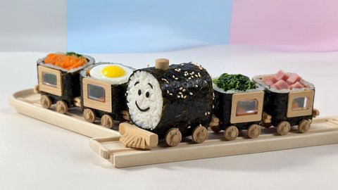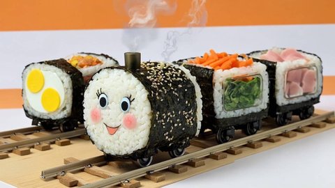 김밥 캐릭터들로 기차를 만들어 애니메이션을 하나 만들어봤어요.