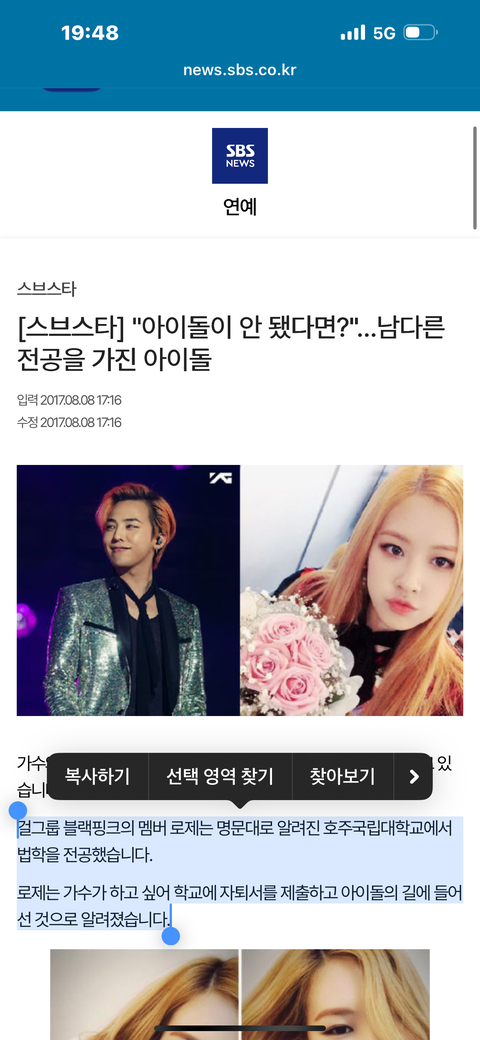 로제 아빠랑 친언니가 여기 대학인데 오보인거야?