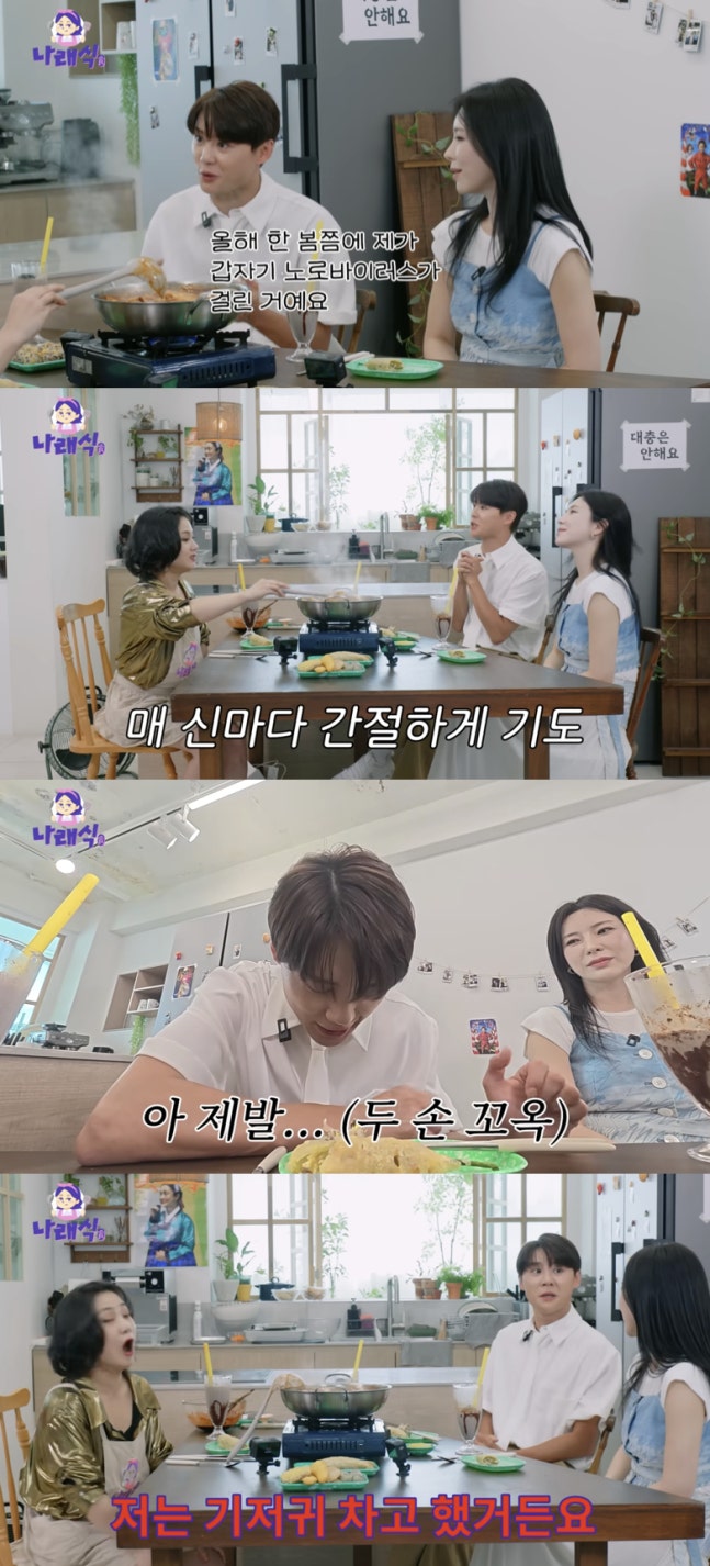 /사진='나래식' 영상화면 캡쳐그는 "온몸이 두들겨 맞은 몸살 기운처럼 왔다. 몸이 춥고 소화가 안 되는 듯한 느낌이 드는데 두통까지 왔다. 사람이 아플 수 있는 곳이 다 아팠다. 매 씬마다 기도하며 들어갔다. 근데 그게 어떤 공연보다도 환하게 밝게 웃으며 즐겁게 해야했다. 춤도 많이 춰야했다. 매 신 끝나면 들어가자마자 (쓰러진것처럼) 기도하고 있다가 (무대에) 나갔다"라고 털어놔 프로다운 투혼을 보여줬다.이에 정선아는 자신도 과거 무대에서 기저귀를 차고 오른 적 있다며 대타가 불가능한 뮤지컬 배우의 고충을 털어놔 시청자들의 공감을 자아냈다.