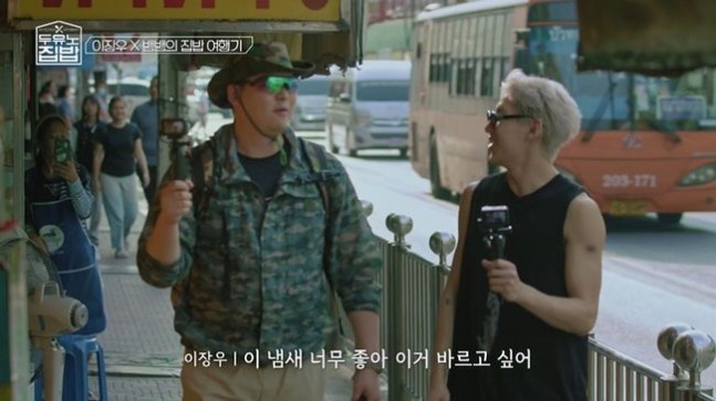 직후, 저 멀리 떨어져 있는 ‘보틀 누들’(배에서 즉석 조리해 파는 국수)을 발견해 ‘킁킁 장우’에 등극했다. 보틀 누들로 에너지 충전한 두 사람은 다시 장사에 돌입했다. 이때 뱀뱀은 옹기종기 모여 있는 할머니들을 보고 “한국에서 온 배우!”라고 이장우를 소개했고, 현지인들은 “잘생겼다”며 쁠라투를 대거 구입했다. 완판을 달성한 두 사람은 잠시 휴식을 취하기로 했고, 뱀뱀이 강추한 ‘솜땀(태국식 매운 샐러드)’과 ‘오리입 튀김’ 등을 양손으로 뜯으며 행복해했다.