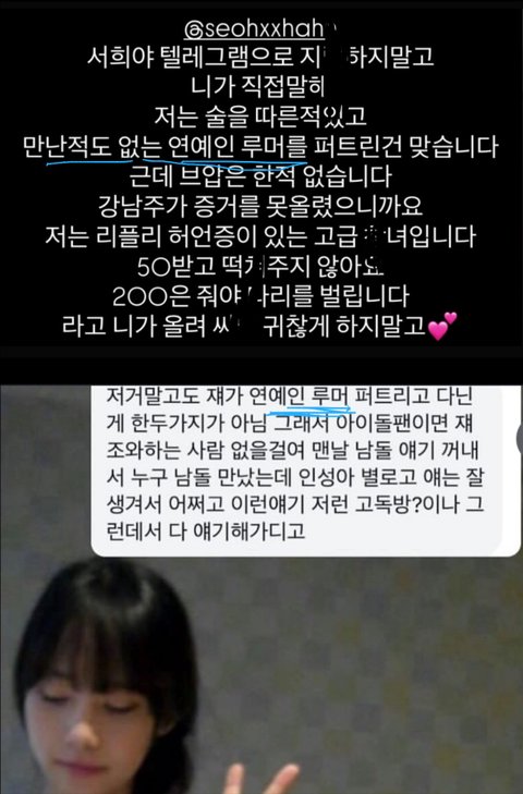 1.한서희가 연예인 루머를 뿌리고 다닌다고 다 폭로함