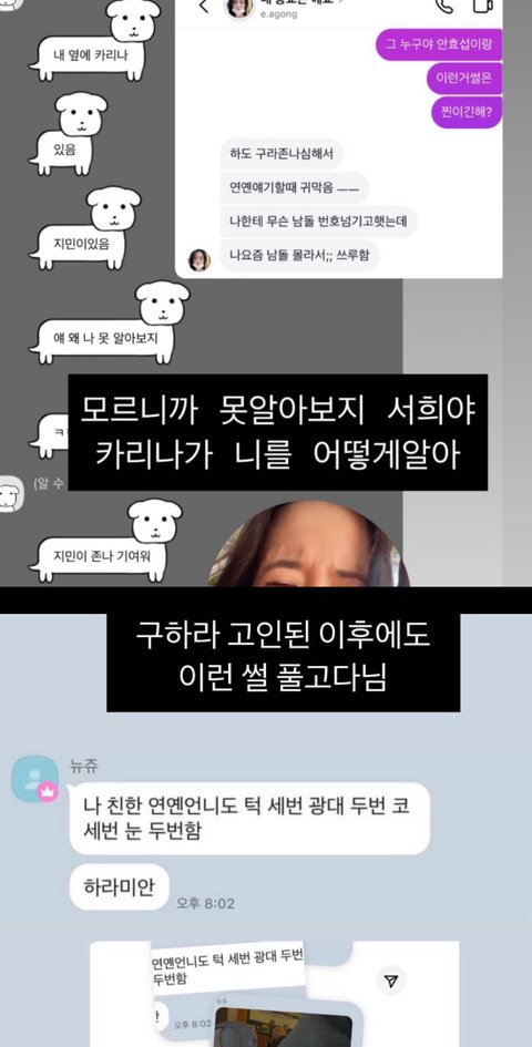 2.한서희가 카리나는 자기 옆에 있는데 카리나가 왜 자기를 못알아본다고 카리나에 대해서 망상루머를 만든거 다 털렸고 고인이된 구하라까지 추하게 욕하고 다닌거 다 털림