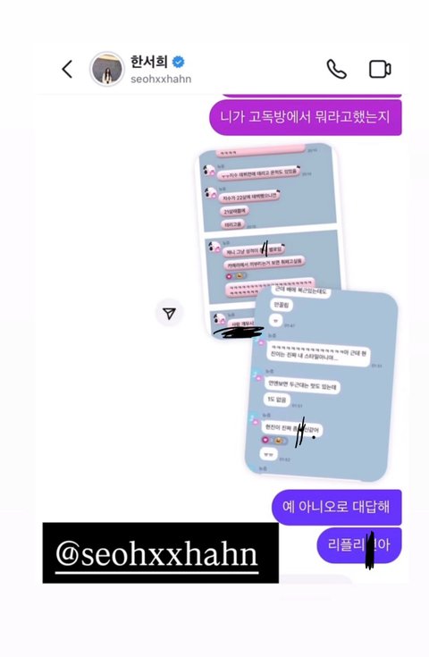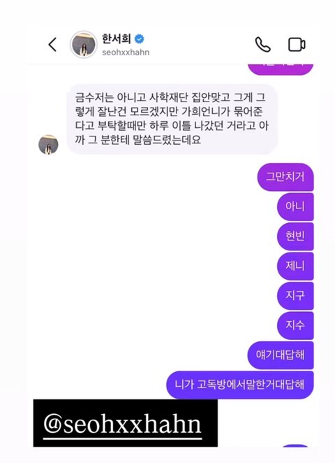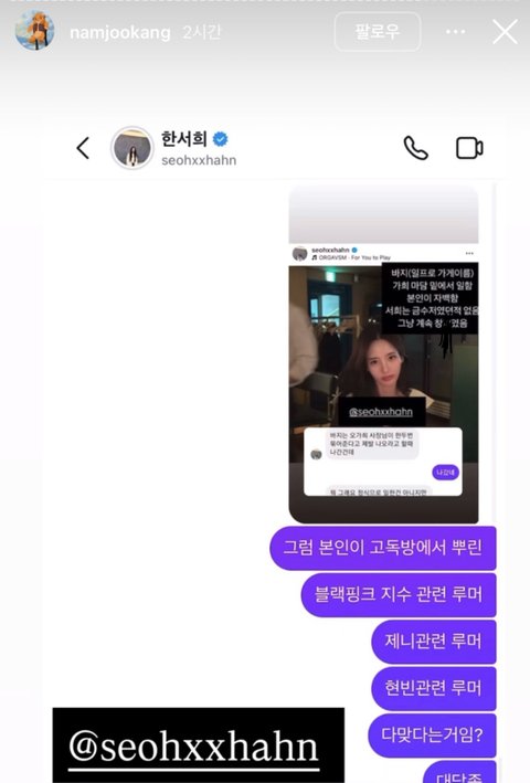 3.이 사진은 강남주님이랑 한서희가 서로 디엠한 사진인데 좀 길거임