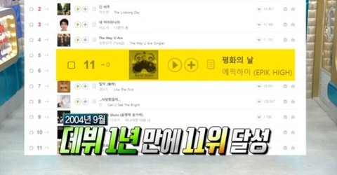 그렇게 타블로가 작곡한 평화의 날로 바로 11위 찍으며 일단 성공함 오