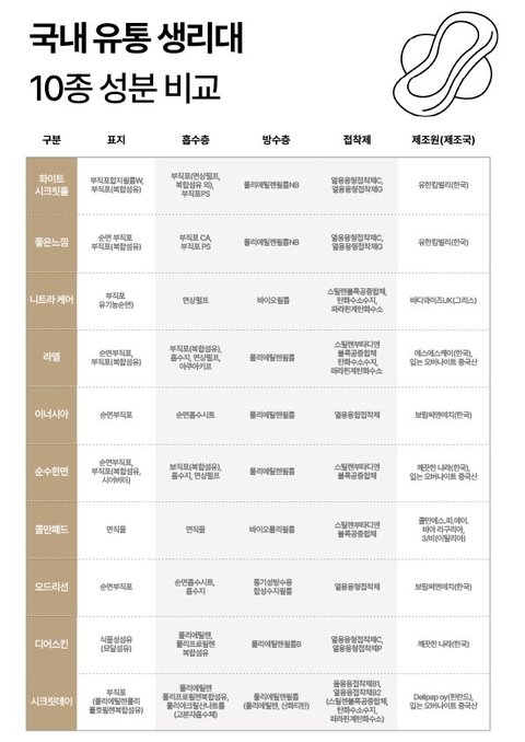 성분표 한번 눈뜨고 나니까 쿨링 생리대를 못 쓰겠고