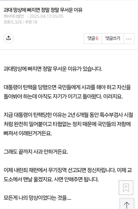 오늘도 분명히 길에서 "저 위에가 망상에 빠져 있어서 다 잡혀가는데 저는 그 때 현실을 살고 있었습니다."라고 안하던가요?