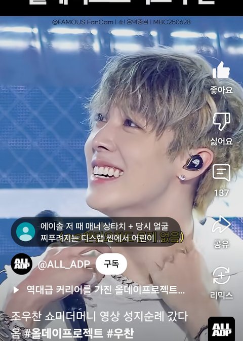 올데프 우찬 개잘생겼는데?