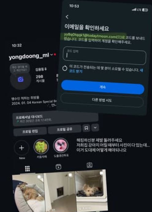 솔라 소셜미디어함께 공개된 사진에는 솔라 반려견 계정 아이디과 함께 로그인 할 수 없는 상황의 솔라가 담겼다. 솔라는 알 수 없는 이메일로 설정된 부분에 대해 형광펜으로 강조하기도 했다.