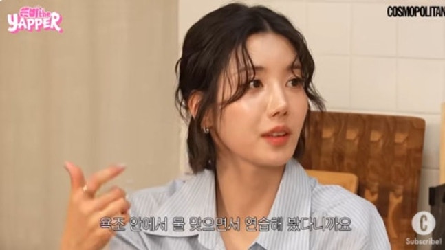 이어 권은비는 “저는 2023년에 워터밤을 처음 나갔지 않나. 감이 안 와서 욕조에서 물 맞으면서 연습해봤다. 스타일리스트 선생님이 샤워기로 물 쏴주고 저는 계속 연습하고 그랬다”라고 워터밤을 위한 노력을 떠올렸고 이민혁은 “그러니까 네가 (워터밤 여신이)된 것”이라고 강조했다.
