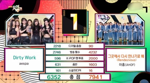 속보 아홉 에스파 누르고 뮤뱅 1위