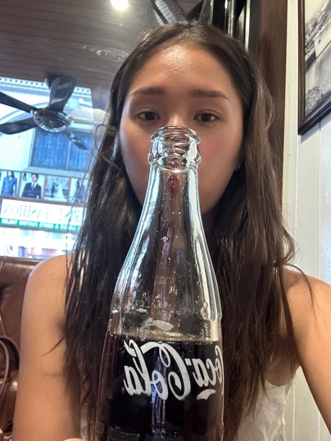 노메이크업에 가까운 내추럴한 얼굴로 콜라병 뒤에 숨어 장난기 가득한 모습도 눈길을 끌었다. 이 컷은 미미의 털털하고 현실적인 매력까지도 느껴지게 한다.