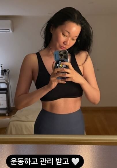 사진 속 그는 민소매 크롭톱과 레깅스를 입고 거울 앞에서 셀카를 찍고 있다. 자연스럽게 넘긴 머리, 꾸밈없는 민낯, 그리고 잘 관리된 복부 라인이 시선을 사로잡는다. 특유의 자신감 있는 분위기가 그대로 담겼다.