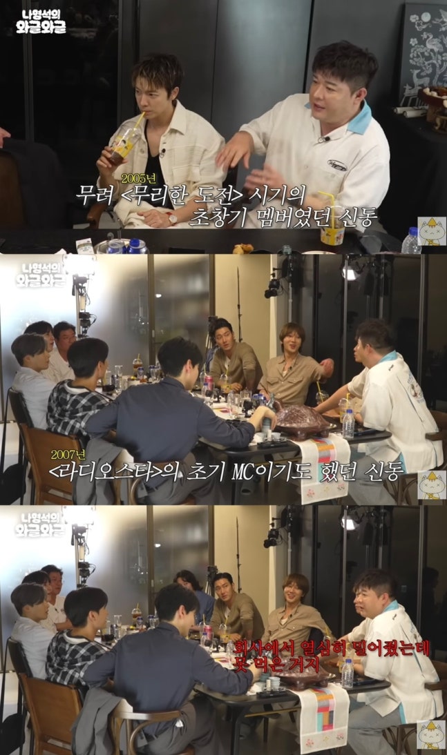 유튜브 채널 ‘채널 십오야’ 캡처 또한 신동은 ‘무한도전’ ‘라디오스타’ 원년 멤버라고 밝혀 눈길을 끌었다. 그는 “옛날에 ‘무한도전’ 나갔다. ‘무리한 도전’ 시기에 멤버 한창 꾸릴 때고, 하하 형도 없을 때였다”고 당시를 회상했다.