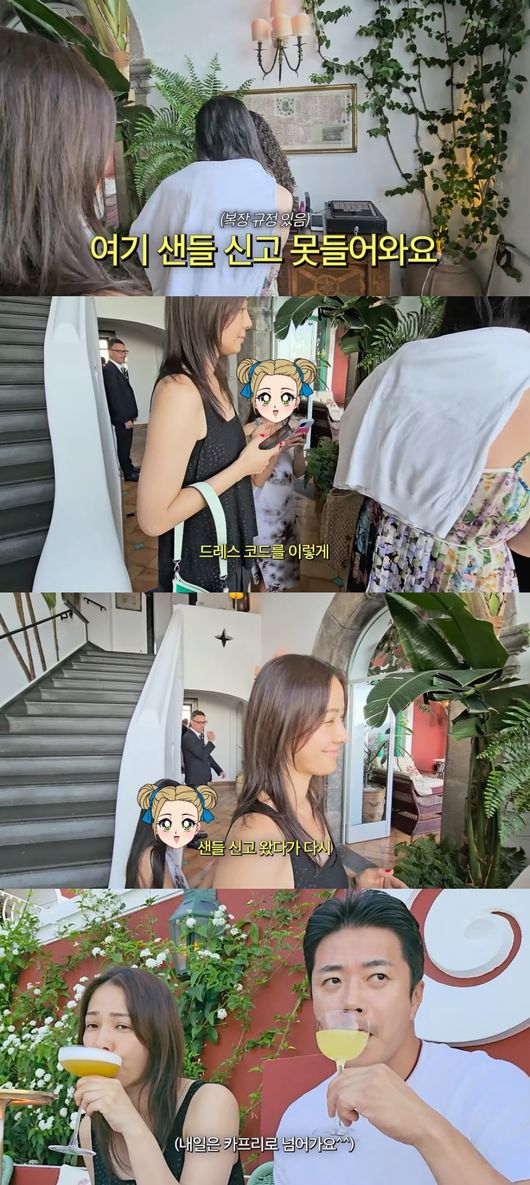 권상우는 해당 레스토랑에 대해 소개하며 "비싸고 유명한 곳이다. 그런데 드레스코드가 있다. '샌들'을 신으면 못 들어간다. 그래서 리호랑 손태영이 모르고 샌들을 신고 왔다가 옷을 다시 갈아입고 왔다"라고 밝혔다.