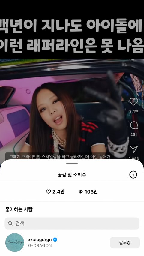왜 제니만 나온 캡본로 날조함? 저 릴스 유명 랩퍼라인 모은건데 별의미 없어 지디좀 놔라