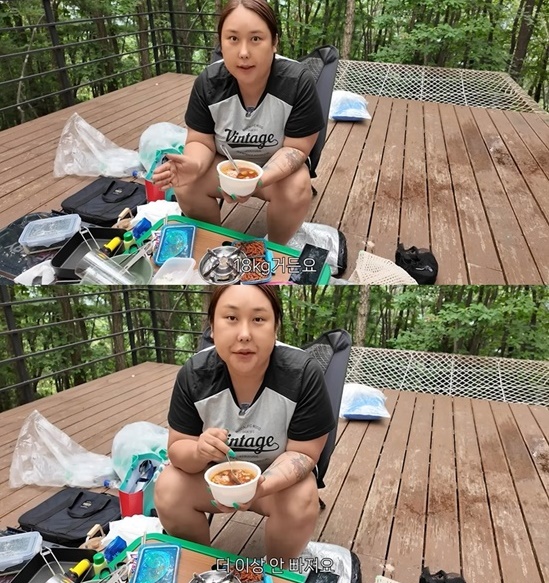 풍자는 컵라면에 밥까지 말아먹으며 특유의 먹방을 선보이면서도 "괜찮다. 요즘 다이어트를 하고 있는데 지금까지 총 빠진 몸무게가 18kg다. 18kg를 뺐는데 더 이상 안 빠진다"라고 다이어트 근황을 전했다.