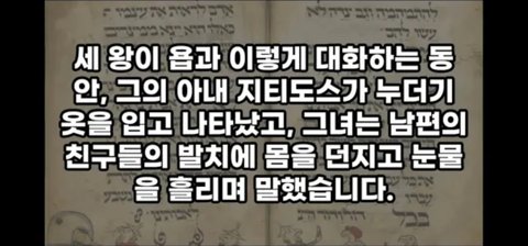 구제의 왕 욥의 뿌리: 에돔의 손자 왕(썩은내 진동 격리 및 권위 잃은 듯), 아내 지티도스(남에 남자? 밑에 일하다 욥에게 2번 죽으라 함) 죽은 뒤 야곱 딸 디나와 결혼 이후 미녀 3딸 등을
