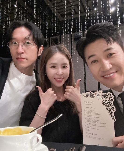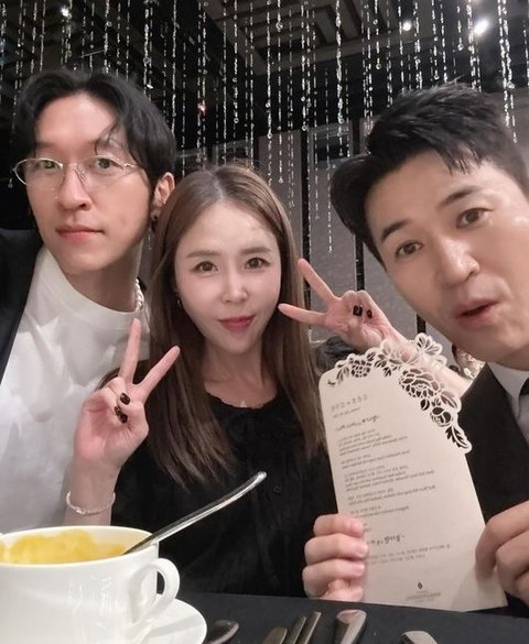 사진 속 신지는 코요태 멤버 김종민, 빽가와 함께 이날 서울 강남구 삼성동 그랜드인터컨티넨탈 파르나스 호텔에서 열린 김준호·김지민의 결혼식에 참석했다. 하객 패션으로 올 블랙 착장을 선택한 신지는 피로연에 나온 음식을 먹으며 김준호와 김지민을 축하했다.