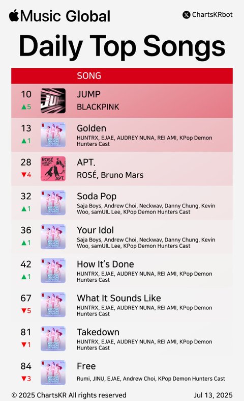 오늘 블핑 '뛰어' 글로벌 스포티파이 1위 달성으로