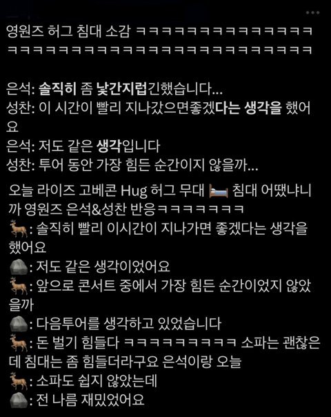 아니 ㅆㅂ 멤들이랑 브리즈들도 허그 어색했다고 놀리니까 맞장구치면서 재밌게 한 걸 이딴식으로 곡해한다고?ㅋㅋㅋㅋㅋ 착하게 살어 왤케 한을 처먹었어