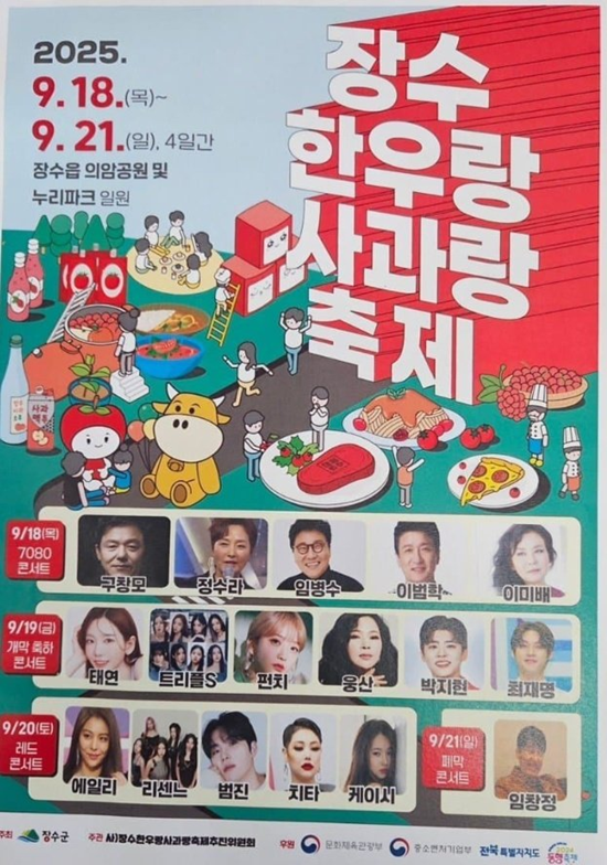 오는 9월 18일부터 21일까지 열리는 2025 장수 한우랑 사과랑 축제 라인업에는 그룹 소녀시대 태연이 포함되어 있어 궁금증을 자아냈다.