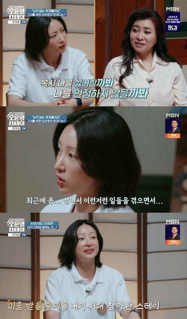 MBN '오은영 스테이' 캡처(서울=뉴스1) 박하나 기자 = 그룹 EXID 하니가 '오은영 스테이'를 통해 용기 낼 각오를 전했다.