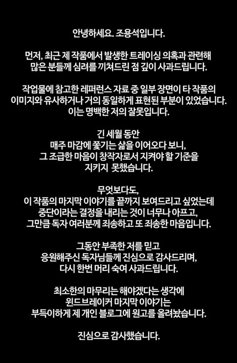 근데 이거 작가가 뭔 일러레 그림 트레이싱 한 거 걸려서 처음엔 걍 사과하고 넘어갔는데