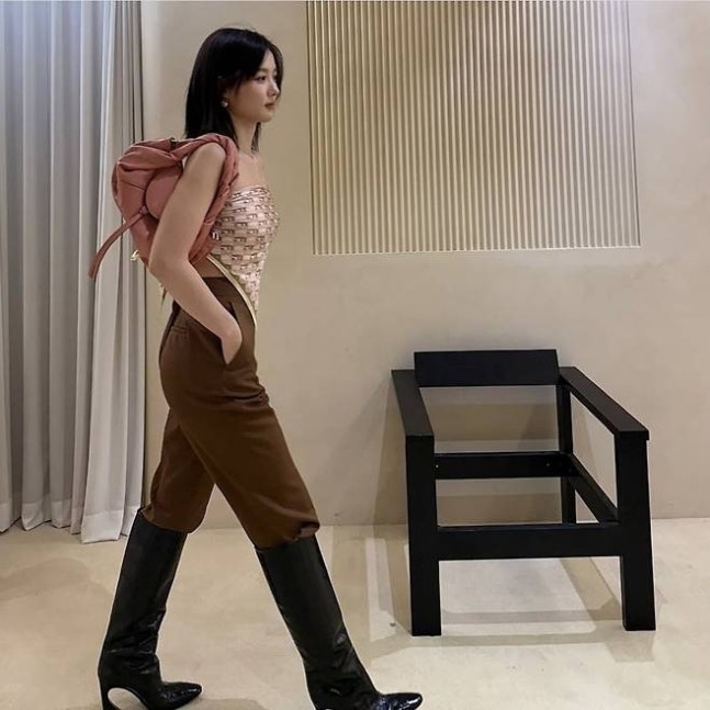김유정오프숄더 라인에 자연스럽게 핏되는 실루엣이 군더더기 없는 상체 라인을 연출했고, 브라운 슬림핏 팬츠와 블랙 롱부츠로 차분하면서도 도시적인 무드를 강조했다.특히 어깨에 걸친 말린 피치 컬러의 백은 부드러운 볼륨감을 살렸고, 골드 이어링과 미니멀 헤어스타일이 감각적인 포인트가 됐다. 꾸밈없이 내려진 단발 머리와 깨끗한 글로우 피부가 전형적인 ‘프렌치 시크’를 완성했다.