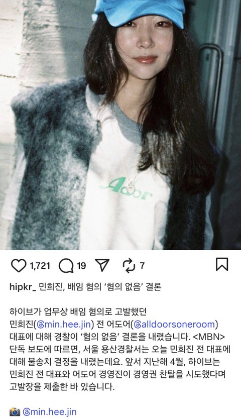 민희진 배임혐의 없음