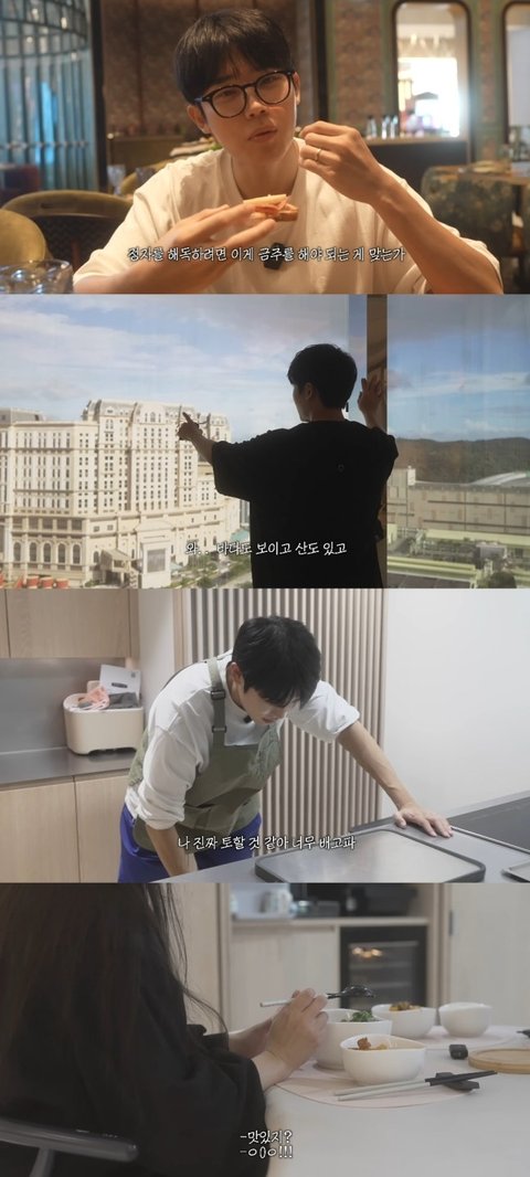 명품 매장이 즐비한 호텔 내부를 구경하던 최시훈은 “와이프랑은 오면 안 되는 곳이다. 명품옷이 난 예쁜지도 모르겠고, 나는 명품 옷을 살 돈도 없지만 왜 사야하는지 잘 모르겠다. 옷장 공개하면 처참하다”면서 “제일 비싸게 주고 산건 옛날에 와이프가 선물로 디올 셔츠를 사줬었다. 근데 같이 입으려면 좋은 걸 입어야하지 않나. 옷은 예쁜데 받쳐입을 게 없더라”라고 말했다.