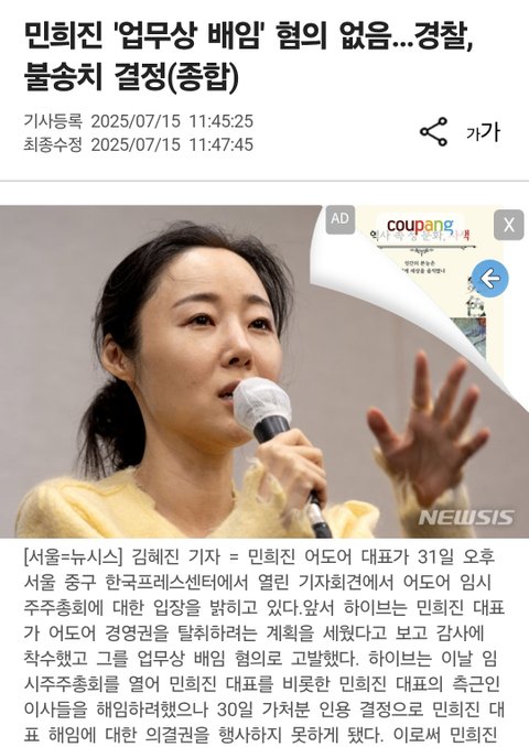 승리한 것이 맞긴함? 민희진이 승리했다쳐도 그게 사회 정의로 보기 힘들지