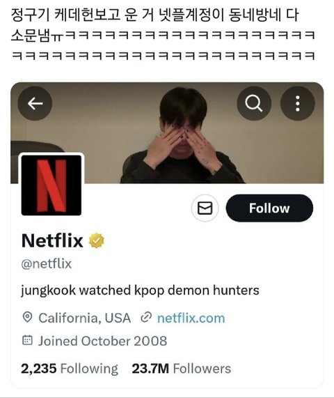 소문 쫙 났어 틱톡에도 엄청 뜨더라구ㅋㅋ 심지어 케데헌 리액션하는 정국이를 리액션하는 영상 ㅈㄴ 뜸 ㅋㅋ