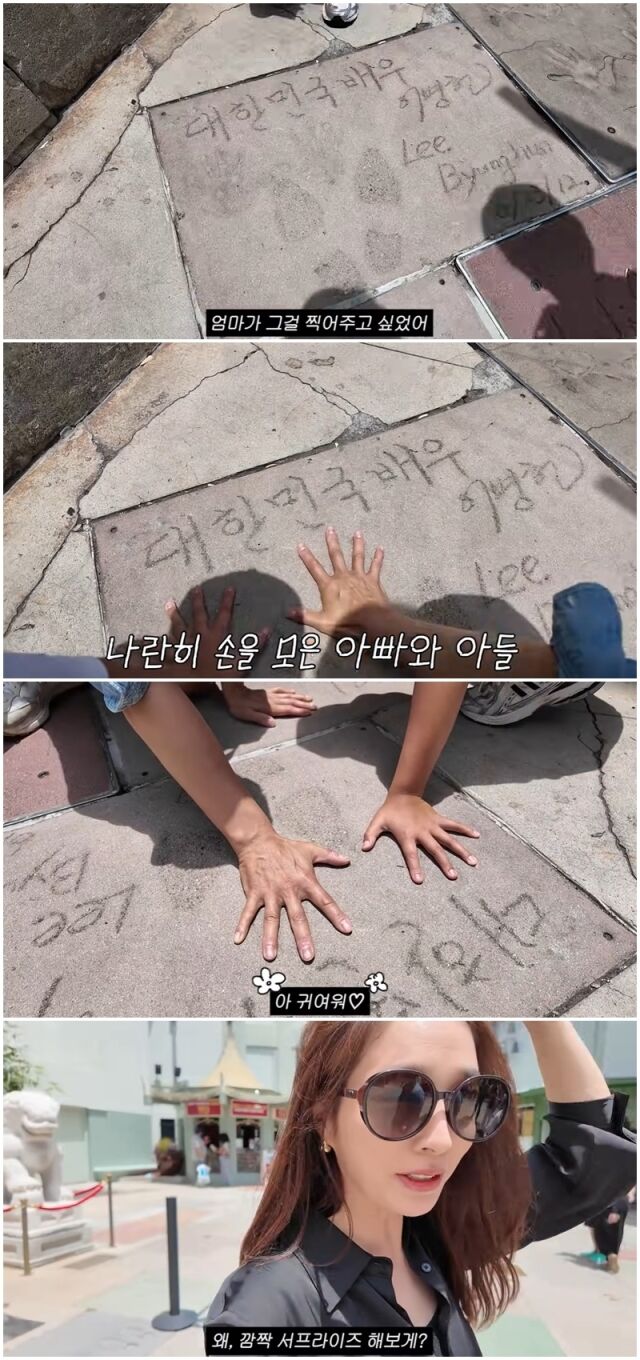 영상 속 이민정은 “할리우드 거리에 왔는데, 아들에게 아빠 핸드프린팅을 보여줄 예정”이라며 ‘차이니즈 시어터’로 향했다.
