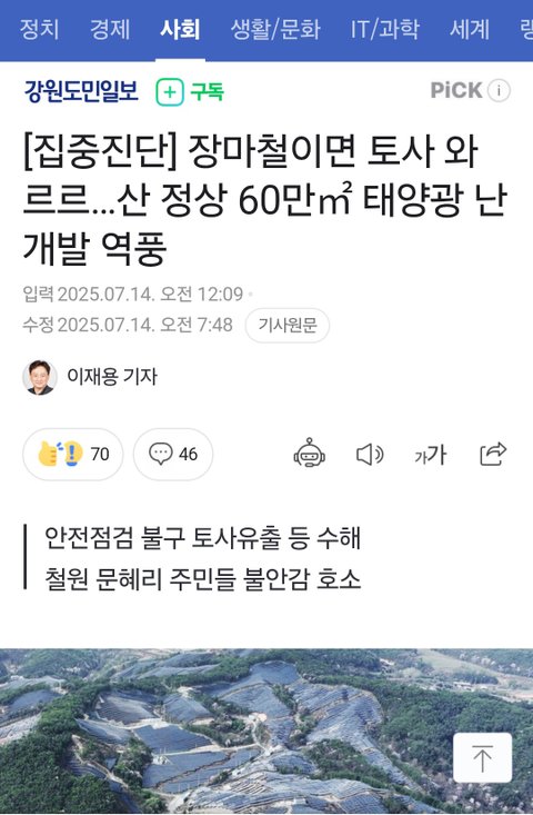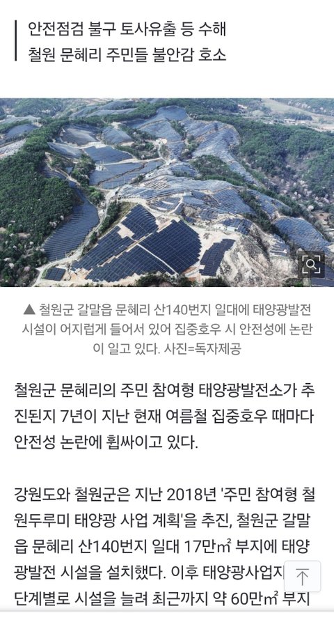 강원도 산에 설치 했던 태양광 쓰러지고 부숴지고
