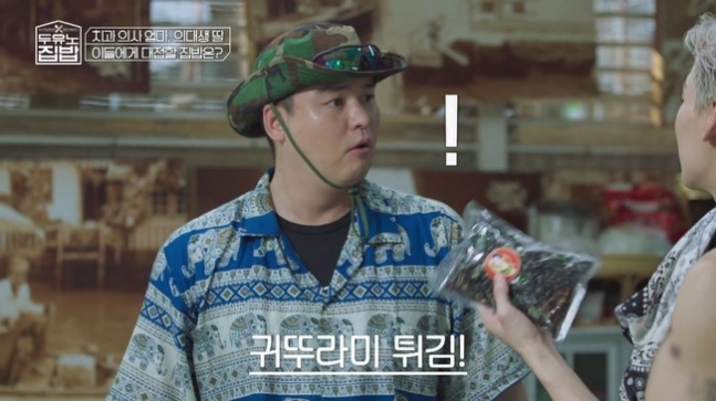 MBN, MBC에브리원 ‘두유노집밥’장보기를 마친 이장우는 태국 모녀의 집에 도착했다. 뱀뱀은 본가에서 어머니표 재료를 챙겨 왔다. 입구에 들어서자 잘 꾸며진 정원이 시작으로, 무려 3채의 건물로 구성된 100년 넘은 수상가옥이 두 사람을 놀라게 했다. 집 구경을 마친 뒤, 주방에서 재료를 손질하던 중 뱀뱀은 “집에서 좋은 걸 가져왔다”며 엄마가 손수 만든 태국 국민 간식 귀뚜라미 튀김을 꺼냈다. 생소한 비주얼에 잠시 망설이던 이장우는 한입 맛본 뒤 “새우랑 비슷하다. 자꾸 손이 가네~”, “어머니가 양념을 잘하셨다”며 다소 고장 난 리액션을 가동해 웃음을 안겼다.