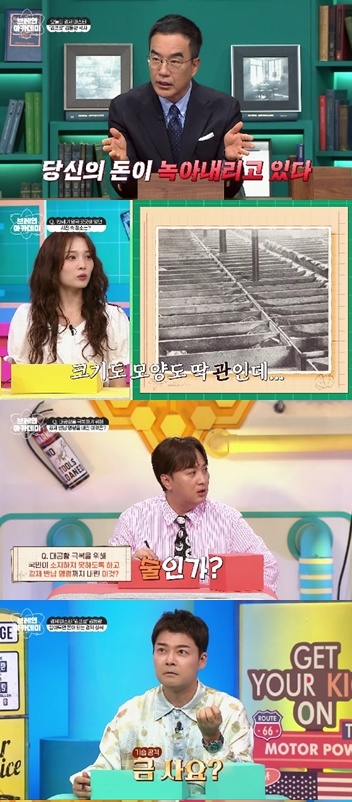 이에 하석진은 “물가”라고 추론했고, 황제성은 “인플레이션?”이라며 정답을 맞혔다. 김동환은 “지금 한국도 인플레이션이다. 가치가 보존되는 걸 찾아 분산 투자를 해야 한다”고 경제 꿀팁을 선사했다.