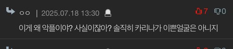 근데 진심으로 카리나가 예쁜얼굴이 아니라고 믿는거?