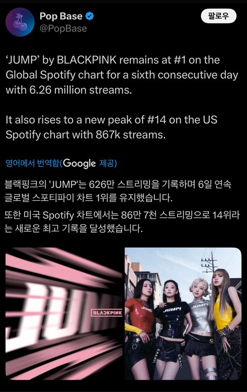 그 외 유튜브 뮤직 1위, 글로벌 앱뮤 2위 등 거의 모든 플랫폼에서 최상위권
