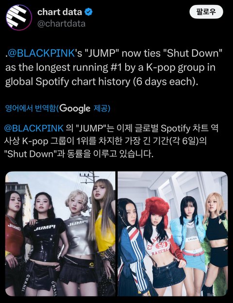 k팝 최초 글포티 주간 1위 셧다운에 이어
