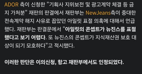 뉴진스 아일릿은 민희진이 이 사태를 이야기하기 전부터 이미 판에서도 돌던 이야기였음 민희진이 대놓고 지어낸 것도 아니고 대중들의 반응을 이야기한 것 뿐인데 뭐가 잘못한 거지 난 빌리프랩 말이 더 이상함 아일릿이 억까를 당하든 아니든 빌리프랩은 피해자라 할 때가 아니에요 소비자 혼동을 야기할 정도로 비슷한 기획안이 대체 왜 나왔는데요 아이덴티티 설계 자체가 겹치면 그건 장르 탓이 아닌데 빌리프랩은 이성도 없고 능지도 없고 걍 잉잉거리는 수준인데 ㅋㅋㅋㅋㅋ