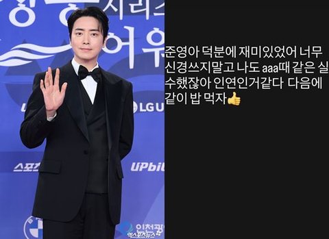 이준혁은 18일 자신의 개인 채널에 "준영아 덕분에 재미있었어. 너무 신경 쓰지 말고 나도 AAA 때 같은 실수 했잖아"라는 글을 남겼다.