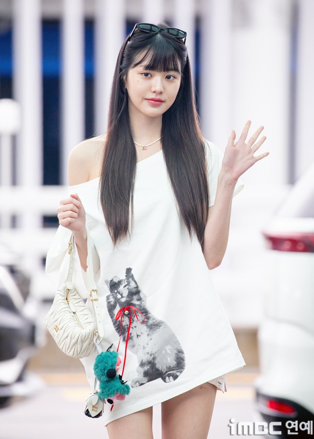 아이브(IVE) 장원영이 19일 오전 파리에서 열릴 음악 페스티벌 롤라팔루자 공연 참석 차 인천국제공항 제2여객터미널을 통해 프랑스로 출국하고 있다.이날 아이브(IVE 안유진 가을 레이 장원영 리즈 이서)는 다양한 공항패션을 뽐내며 출국했다. 장원영은 앞머리를 내린 시스루 뱅 헤어에 긴 생머리. 라운드 티가 너무 커서 어깨가 드러난 상의. 짧은 팬츠와 함께 돋보이는 베이지 샌들 및 인형 액세서리가 돋보였다. 장원영은 확신의 인형 미모를 뽐내며 출국장으로 향했다.현장에서 작성된 기사입니다.