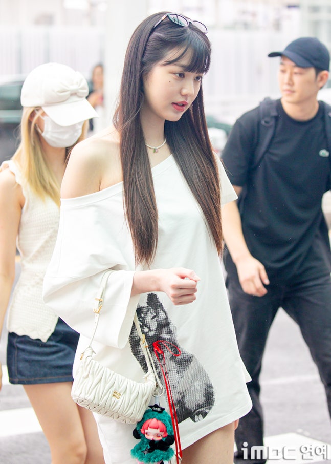 아이브(IVE) 장원영이 19일 오전 파리에서 열릴 음악 페스티벌 롤라팔루자 공연 참석 차 인천국제공항 제2여객터미널을 통해 프랑스로 출국하고 있다.이날 아이브(IVE 안유진 가을 레이 장원영 리즈 이서)는 다양한 공항패션을 뽐내며 출국했다. 장원영은 앞머리를 내린 시스루 뱅 헤어에 긴 생머리. 라운드 티가 너무 커서 어깨가 드러난 상의. 짧은 팬츠와 함께 돋보이는 베이지 샌들 및 인형 액세서리가 돋보였다. 장원영은 확신의 인형 미모를 뽐내며 출국장으로 향했다.현장에서 작성된 기사입니다.
