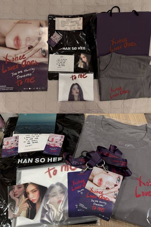 이 가운데 첫 팬미팅인 태국 방콕에서 한소희가 팬들을 위해 선물을 마련한 상황. 그는 팬들을 위한 굿즈 형태로 제작된 쇼핑백, 더스트백, 슬로건, 티셔츠, 한소희의 필체로 준비된 메시지 카드까지 직접 준비했다. 이에 X와 인스타그램 등 해외 팬들이 즐겨 사용하는 SNS를 위주로 한소희 팬들의 인증글이 퍼지고 있다. 이에 또 다른 월드투어 팬미팅 공연에 참석할 팬들의 이목을 끌며 기대감을 높이는 중이다.
