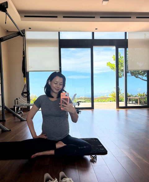이하늬는 사진 속 모습에서 눈에 띄게 배가 볼록한 모습으로 시선을 모은다. 만삭임에도 운동에 열중하는 모습이다.